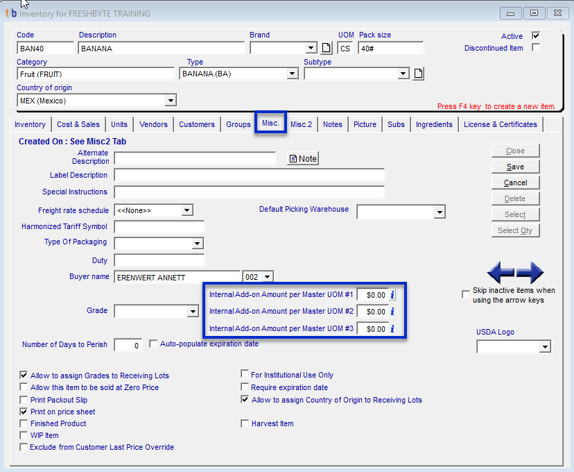 FreshByte has introduced a new System Setting that will allow up to 3 Internal Add-ons to be added to each Item Master.